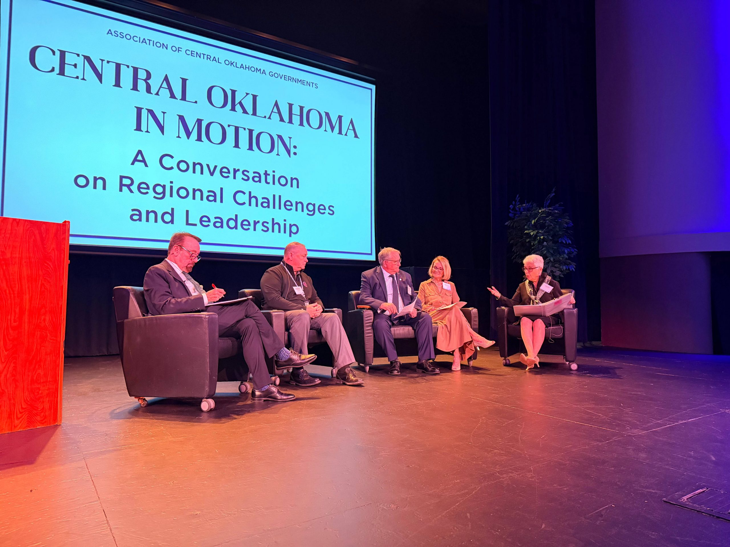 The moderated panel — Central Oklahoma in Motion: A Conversation on Regional Challenges and Leadership — centered on three areas: